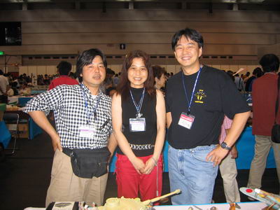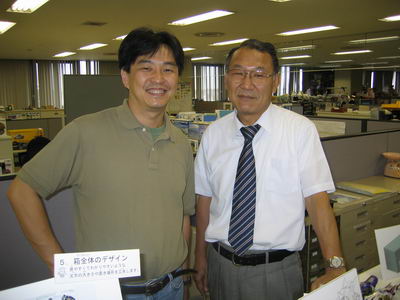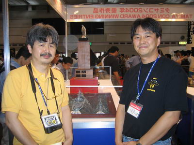 | with Mr. Masashi Sone,Tamiya He is the designer of both 1/32 F-14A and 1/350 Missouri which I submitted Tamiya/con 04. |